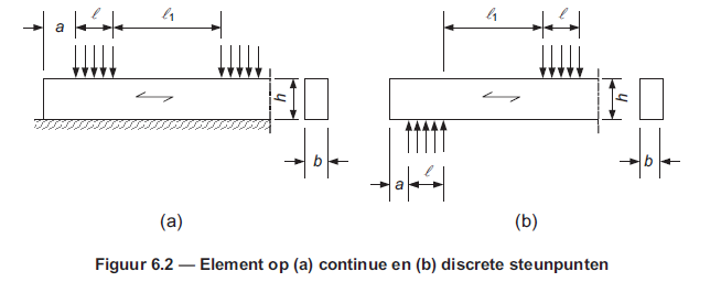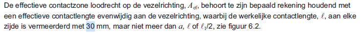 Volgens de NEN-EN 1995-1-1 mag het oppervlakte Aef berekend worden met ‘l’ welke met 30mm vermeerderd mag worden per zijde. Bij de eindstijl is dat dus 1x 30mm, bij een doorgaande onderregel mag dit 2x30mm zijn. Zie ook figuur 6.2 in de norm.